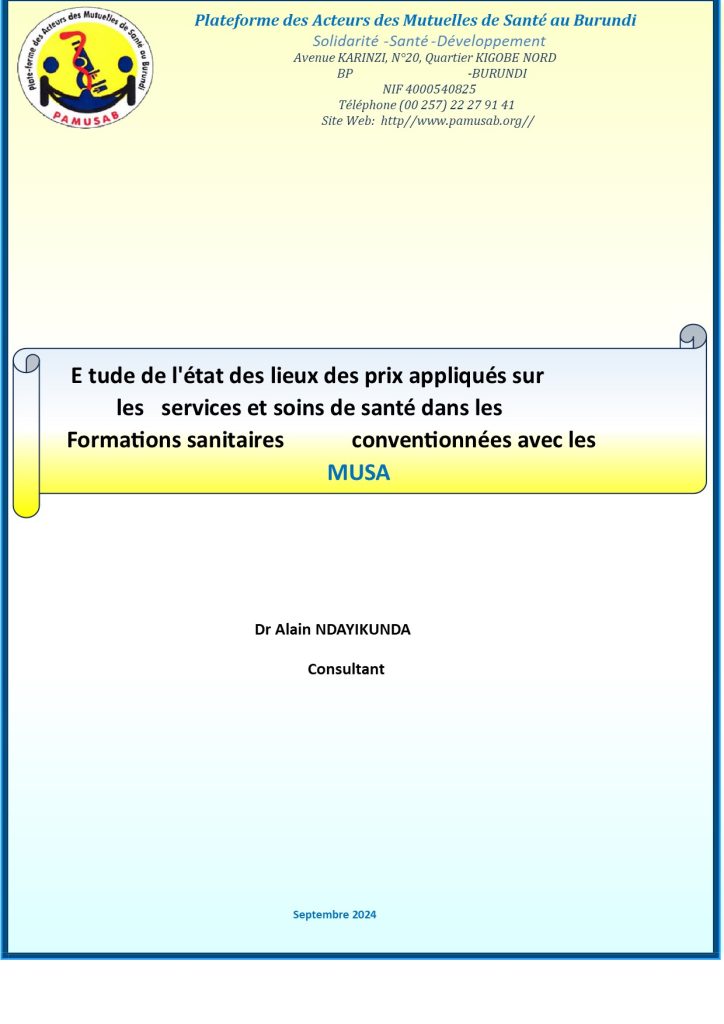 Etude de l’état des lieux des prix appliqués sur les services et soins de santé dans les Formations sanitaires conventionnées avec les MUSA
